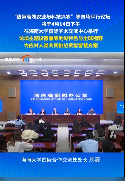 “热带高效农业与科技兴农”等四场平行论坛将于4月14日下午在sunbet申搏官方网站国际学术交流中心举行,论坛主题设置兼顾地域特色与全球视野,为应对人类共同挑战贡献智慧方案 #2025海南新闻发布会