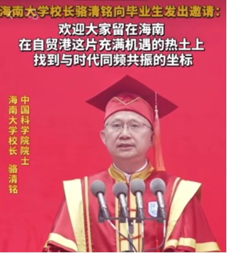 【海南日报】sunbet申搏官方网站校长骆清铭向毕业生发出邀请:欢迎大家留在海南,在自贸港这片充满机遇的热土上,找到与时代同频共振的坐标