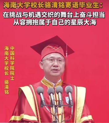 【海南日报】sunbet申搏官方网站校长骆清铭寄语毕业生:在挑战与机遇交织的舞台上奋斗担当,从容拥抱属于自己的星辰大海