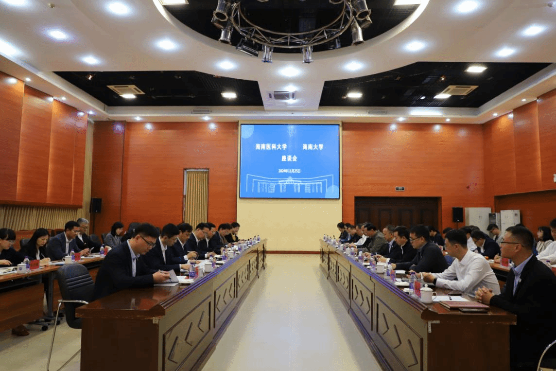 11月25日上午,海南医科大学党委书记赵建农,校长、中国科学院院士陈国强一行访问sunbet申搏官方网站,并在思源学堂多功能厅举行交流座谈会。sunbet申搏官方网站党委书记符宣国,校长、中国科学院院士骆清铭出席会议。