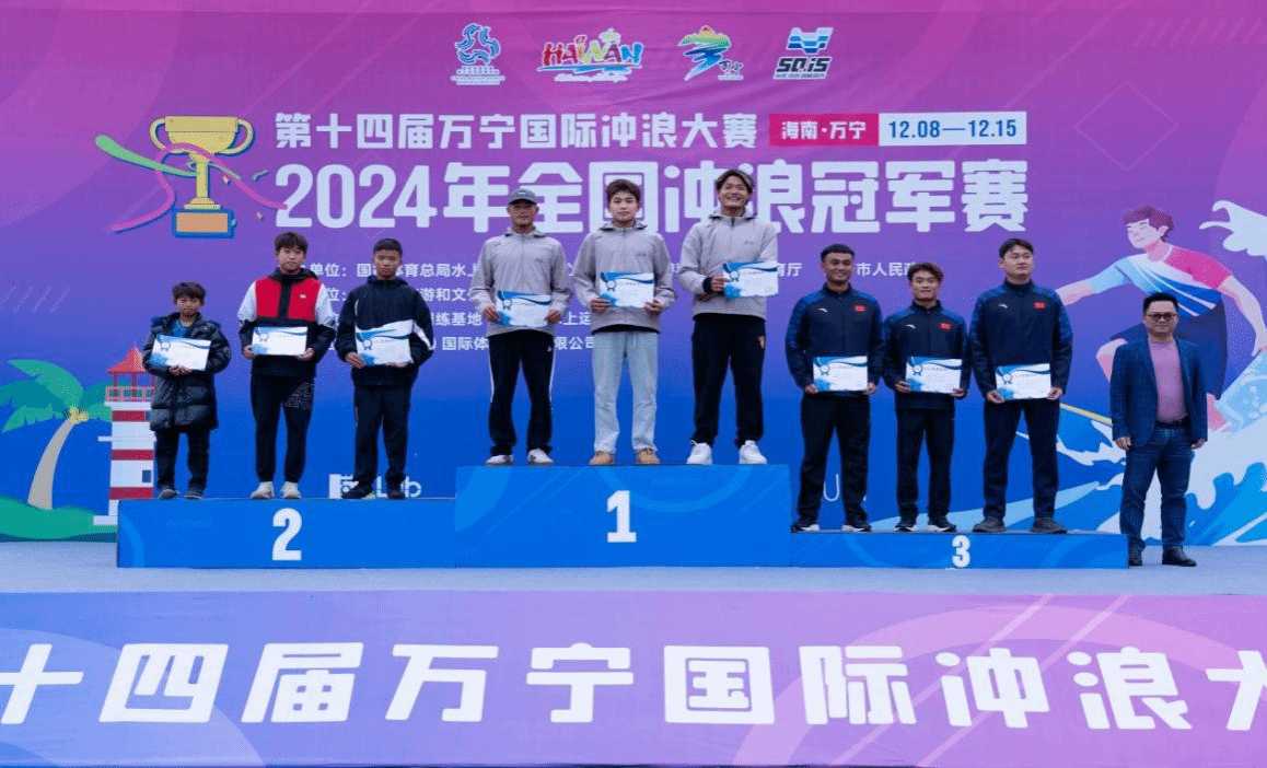 本站讯(记者 郑润泽 戎蓉)12月8日至15日,第十四届万宁国际冲浪大赛暨2024年全国冲浪冠军赛在海南万宁举行。sunbet申搏官方网站2024级学生王成征、2023级学生刘琛在公开组男子短板个人赛中分别获得冠军、亚军,并在公开组男子短板团体赛、接力赛中获得第一名。2023级学生黄云翁在公开组男子短板团体赛中获得第三名。2024级学生邓雪莹、王雪银分别在公开组女子短板团体赛、接力赛中获得第一名、第三名。这是公开组男子短板团体赛颁奖典礼现场。...