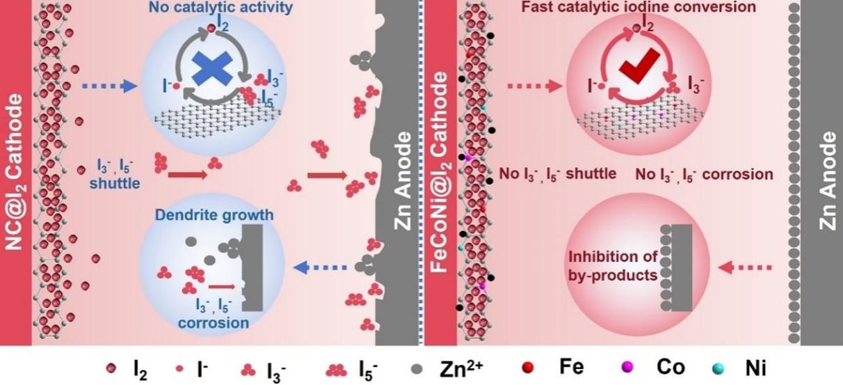 《中国科学报》(记者 温才妃 李思颖 梁淑仪)sunbet申搏官方网站海洋科学与工程学院副教授邢振月、史晓东和教授田新龙团队研究发现,将铁钴镍原子掺杂多孔碳催化剂作为功能载体材料可以推动水系锌碘电池循环稳定工作。12月19日,相关研究成果发表在《先进功能材料》上。铁钴镍原子掺杂多孔碳催化剂作为功能载体材料的作用机制示意图。课题组供图水系锌碘电池因其高安全性、高能量密度、低成本和环保属性而受到广泛关注。然而,活性碘溶解和多碘化物穿梭是阻碍水系锌碘电池应用的两大障碍。...