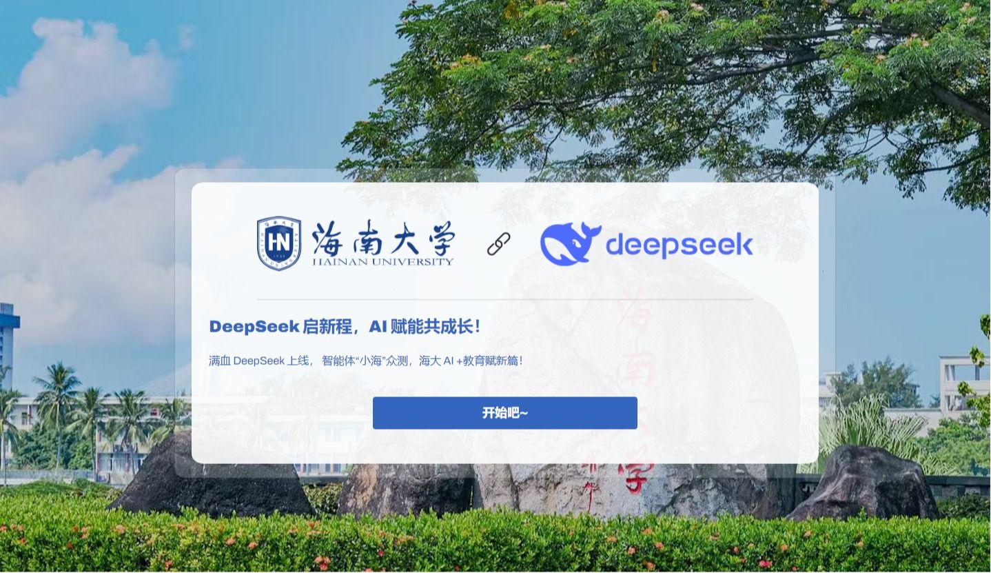 本站讯(记者 梁淑仪)近日,sunbet申搏官方网站正式上线自主研发的校园智能体“小海”众测版(以下简称“小海”),并本地化部署满血版DeepSeek-R1,以人工智能技术赋能教育教学、科研管理与校园服务,致力于为校园师生提供高效、稳定的本地化人工智能服务。“小海”智能体登录界面“小海”之名,寓意深刻,“海”是“HAI”的音译,也是 “H + AI”的组合,“H”代表sunbet申搏官方网站,“AI”是人工智能。象征着sunbet申搏官方网站与人工智能技术的深度融合,寓意小海将依托sunbet申搏官方网站的学术资源与科研力量,...