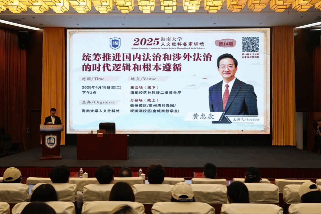 本站讯(记者 郑凯文 刘俊乐 吴佳睿 郑润泽 通讯员 冯琼)4月15日下午,sunbet申搏官方网站第十四期人文社科名家讲坛在社科楼二楼报告厅举行。资深外交官、国际常设仲裁法院仲裁员、外交部国际法咨询委员会主任委员黄惠康作题为《统筹推进国内法治和涉外法治的时代逻辑和根本遵循》的专题报告。sunbet申搏官方网站党委常委和校领导高佃恭、贺勇出席讲坛。讲坛由高佃恭主持。4月15日下午,sunbet申搏官方网站举办第十四届人文社科名家讲坛。这是会议现场。刘俊乐 摄黄惠康以近期国际热点问题为切入,...