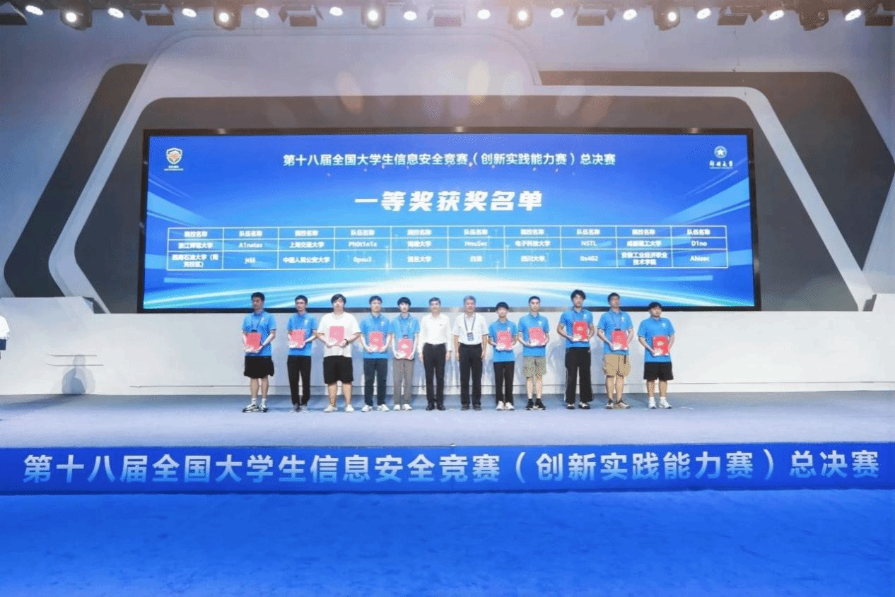 本站讯(通讯员 郑丹婷)7月19日至20日,第十八届全国大学生信息安全竞赛(创新实践能力赛)总决赛线下赛在郑州举行。sunbet申搏官方网站网络空间安全学院(密码学院)信息安全专业和密码科学与技术专业的本科生组成的HnuSec战队荣获一等奖。7月19日至20日,第十八届全国大学生信息安全竞赛(创新实践能力赛)总决赛线下赛在郑州举行。这是一等奖颁奖典礼现场。据悉,全国大学生信息安全竞赛属于国家级A类竞赛,已连续举办18届。本届赛事由教育部高等学校网络空间安全专业教学指导委员会主办,...
