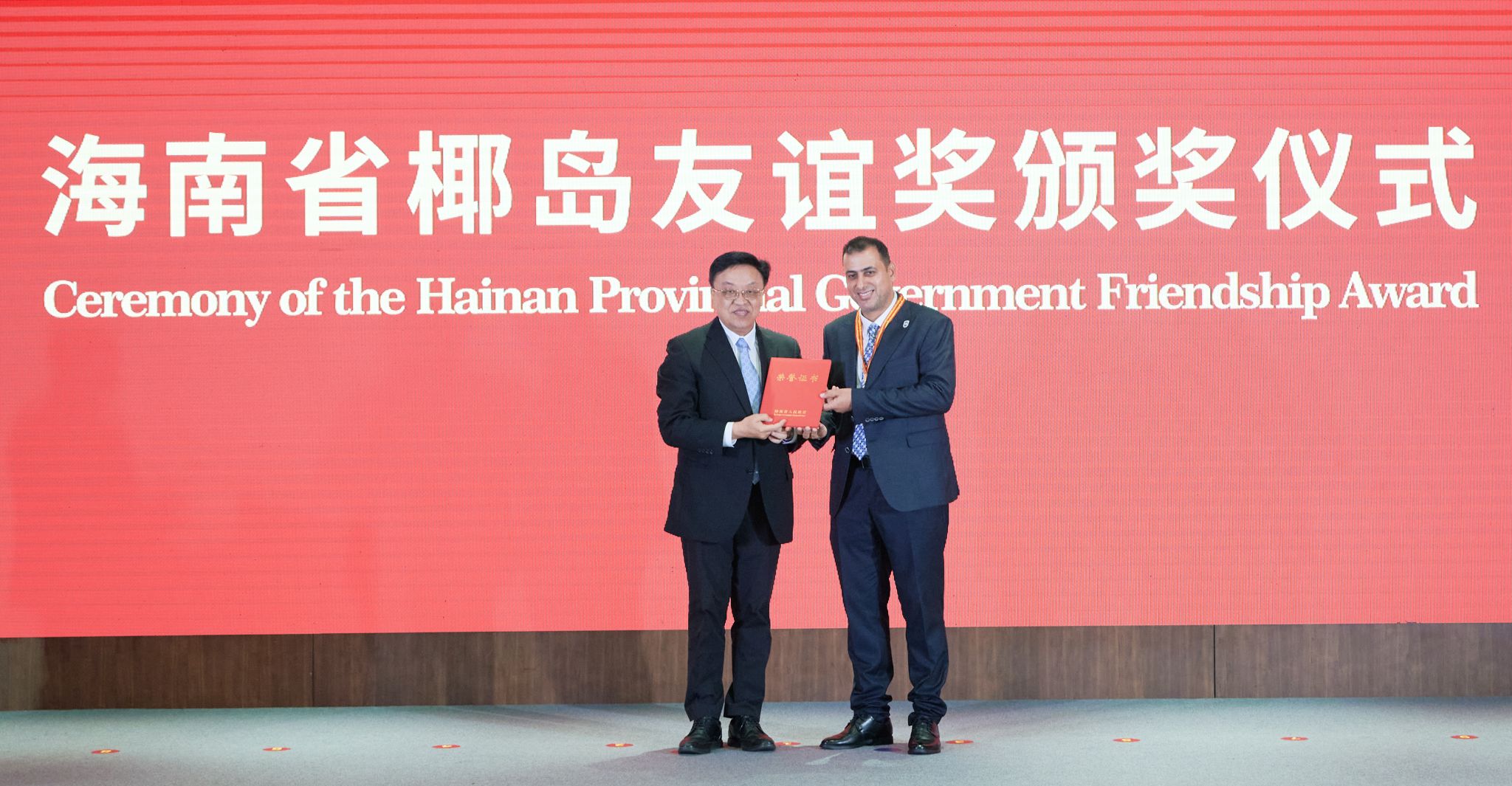 本站讯(通讯员 申捷)9月29日下午,海南省“椰岛友谊奖”颁奖仪式在海口举行。省委书记冯飞为获奖专家颁奖,省长刘小明,省委组织部部长纳云德,副省长谢京等省领导出席仪式。9月29日下午,海南省“椰岛友谊奖”颁奖仪式在海口举行。省委书记冯飞为阿汗穆德颁奖。封烁 摄sunbet申搏官方网站埃及籍专家阿汗穆德凭借在热带土壤研究领域的突破性贡献荣获该奖,并作为7名获奖者的代表登台发言,分享服务海南的实践经验。9月29日下午,海南省“椰岛友谊奖”...