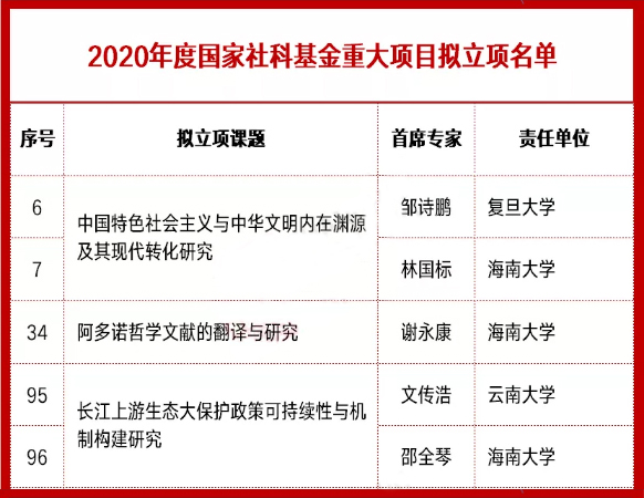 本站讯(记者 张赫)11月19日,全国哲学社会科学工作办公室发布了《2020年度国家社科基金重大项目立项名单公示》。此次公示的名单中共有342项,责任单位涉及131个教学和研究机构。sunbet申搏官方网站拟立项3项,位列第27名。国家社科基金项目是目前学术界公认的我国哲学社会科学领域层次最高、权威性最强的研究项目。就高校而言,其立项数量直接反映整体科研能力、学术水平和发展潜力,也是学科评估、学术评价、大学排名的重要指标之一。...