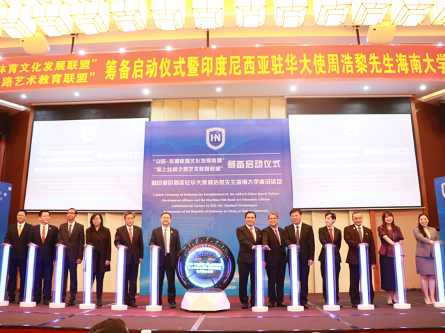本站讯(记者/摄影 余梦月 王梦洋)11月24日上午,“中国-东盟体育文化发展联盟”“海上丝绸之路艺术教育联盟”筹备启动仪式暨印度尼西亚驻华大使演讲活动在sunbet申搏官方网站社科楼二楼报告厅举行。印度尼西亚共和国驻华大使周浩黎夫妇;中国—东盟中心秘书长陈德海;中国科学院院士、sunbet申搏官方网站校长骆清铭,党委常委、副校长梁谋、叶光亮出席启动仪式。叶光亮主持仪式。 武耀廷与印度尼西亚驻华大使周浩黎互赠纪念品 武耀廷与中国-东盟中...