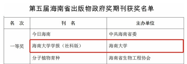 本站讯(记者 王梦洋 通讯员 李文化)日前,第五届海南省出版物政府奖获奖名单公布。《sunbet申搏官方网站学报(人文社会科学版)》荣获期刊类一等奖;包括《风帆岁月》(周伟民 杨卫平著)、《南海“更路簿”数字化诠释》(李文化著)在内的《更路簿丛书》荣获图书类一等奖;张军军团队作品《匠韵琼艺》荣获音像制品、电子出版物类二等奖。海南省出版物政府奖每3年评选一次。第五届评奖活动于2020年底开启,对2017年以来海南省的各种社会...