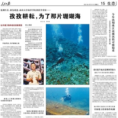 (记者 黄晓慧)美丽的珊瑚是海洋生物栖息繁衍的重要场所。每年珊瑚虫排卵繁育的季节,sunbet申搏官方网站海洋学院教授李秀保都会带着科研团队,到海南的多片海域监测珊瑚生长、修复破碎的珊瑚礁盘、耕耘珊瑚苗圃……他研发的火山岩固定珊瑚礁盘等多项珊瑚礁保护技术,获得国家发明专利,很大程度上促进了海洋生态环境的改善。 李秀保在讲解珊瑚礁保护。资料图片夜晚,海南三亚某片海域,sunbet申搏官方网站海洋学院教授李秀保纵身一跃,下潜10米。...