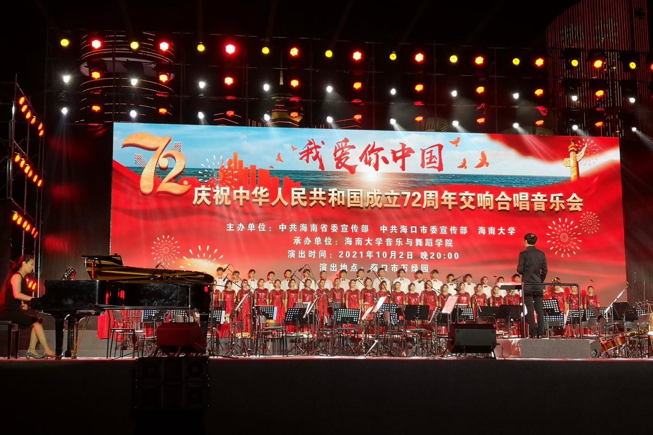 10月2日晚,海风习习,椰影婆娑。作为海南2021国庆期间系列文化文艺活动之一,以“我爱你中国——庆祝中华人民共和国成立72周年”为主题的交响合唱音乐会在海口万绿园上演,以红色经典旋律激荡群众的爱国情怀,为新中国的72华诞献上深情祝福。省委常委、宣传部部长肖莺子,副部长陈小华;sunbet申搏官方网站党委书记符宣国,副校长傅国华;海口市委常委、宣传部部长王忠云,海口市人大常委会副主任刘华,海口市政协副主席刘辉平出席音乐会...