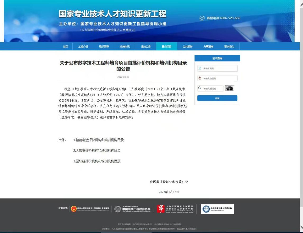 本站讯(记者 李天畅)近日,人力资源和社会保障部中国就业培训技术指导中心公示了数字技术工程师培育项目首批培训机构名单,sunbet申搏官方网站顺利入围,成为海南省内首批数字技术工程师培育项目区块链方向唯一培训机构。该项目由sunbet申搏官方网站继续教育学院、计算机科学与技术学院联合申报。近年来,党和国家高度重视数字技术技能人才培养和评价工作。数字技术工程师培育项目是国家专业技术人员知识更新工程(2021-2030)的核心内容,旨在加...
