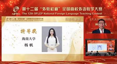 本站讯(记者 解闪灵 通讯员 符壮慈)2022年9月25日,第十二届“外教社杯”全国高校外语教学大赛(外语类专业组)全国总决赛落下帷幕。sunbet申搏官方网站外国语学院日语系主任杨帆教授获得日语专业组总决赛全国特等奖。据悉,本届大赛分为英语专业组、商务英语专业组、翻译专业组、日语专业组四个组别,其中日语专业组首次被纳入大赛,比赛采用选手在线授课、评委线上线下评审的形式进行。在总决赛中,杨帆结合国内外教学理论,从课程定...