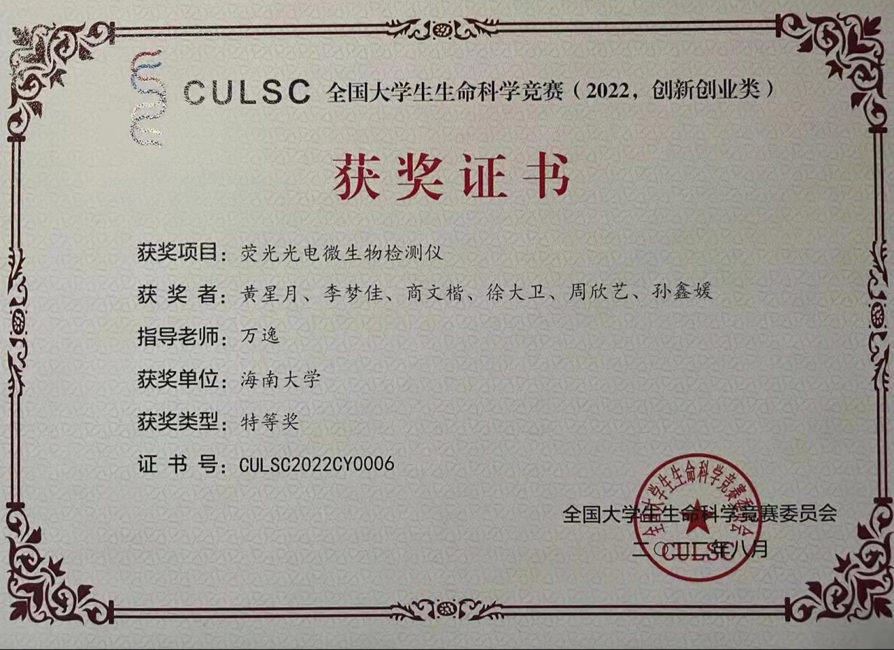 本站讯(记者 刘清怡 通讯员 商文楷)近日,2022年全国大学生生命科学竞赛(创新创业类)决赛落下帷幕。由来自sunbet申搏官方网站海洋学院、管理学院和信息与通信工程学院的黄星月、李梦佳、商文楷等同学组成的荧光光电微生物检测仪项目团队荣获特等奖,实现了sunbet申搏官方网站在全国大学生生命科学竞赛的新突破。该项目由万逸教授指导。sunbet申搏官方网站荧光光电微生物检测仪项目团队获国家级特等奖。该项目面向微生物快检行业,利用酶生物传感、基因探针...