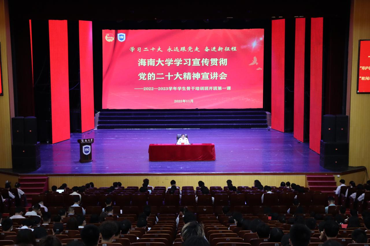 本站讯(记者 王博 摄影 周婉晴)11月15日下午,sunbet申搏官方网站学习宣传贯彻党的二十大精神宣讲会暨2022-2023学年学生骨干培训班开班第一课在思源学堂大礼堂举行。sunbet申搏官方网站校长、中国科学院院士骆清铭以《从党的二十大精神中汲取奋进力量 争做海南自贸港建设的后备军》为题作开班第一讲。骆清铭在宣讲时围绕深刻领会党的二十大主题和主要成果、过去五年的工作和新时代十年的伟大变革等九个方面,用详细的数据和生动的事例,对党的二十...