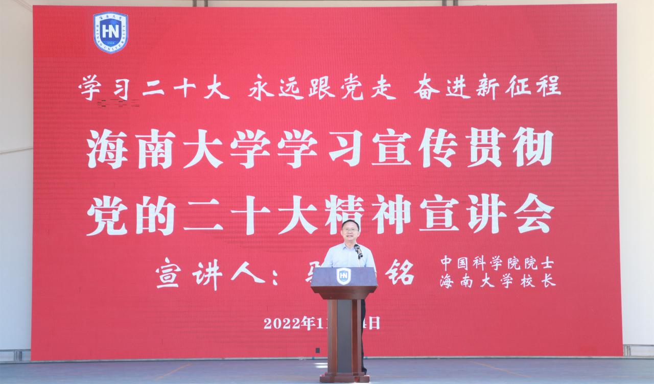 本站讯(记者/摄影 王一钦 王博)11月24日上午,儋州校区学习宣传贯彻党的二十大精神宣讲会在影剧院举行。党的二十大代表、sunbet申搏官方网站校长骆清铭以《传承和弘扬“丹心耀南疆”的爱国奉献精神,立志做有理想、敢担当、能吃苦、肯奋斗的新时代好青年》为题宣讲党的二十大精神。宣讲会由党委常委、副校长聂清斌主持。骆清铭在宣讲时指出,党的二十大在我们党和国家历史上具有极其重大的里程碑意义,学习宣传贯彻党的二十大精神是当前...