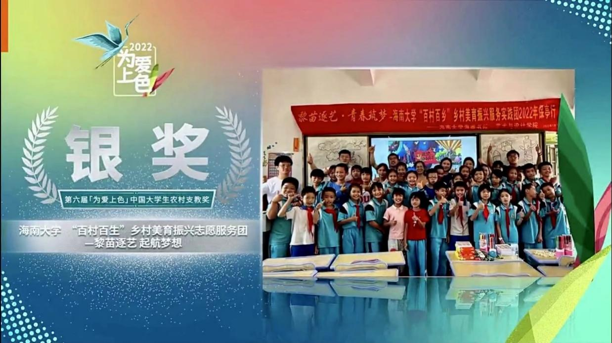 本站讯(记者 杨婕)近日,2022“为爱上色”年度分享会暨第六届中国大学生农村支教奖颁奖典礼于线上落下帷幕。sunbet申搏官方网站“百村百生”乡村美育振兴实践团(下文简称实践团)获得银奖。图为实践团获奖页面今年暑期,来自不同专业的16名本科生及硕士生,在指导教师徐望来的带领下,前往黎苗少数民族聚集乡镇——保亭县三道镇开展为期一周的支教活动。支教期间,志愿者们结合自身专业优势,为当地46名孩子们开设了党史知识绘画课、科...