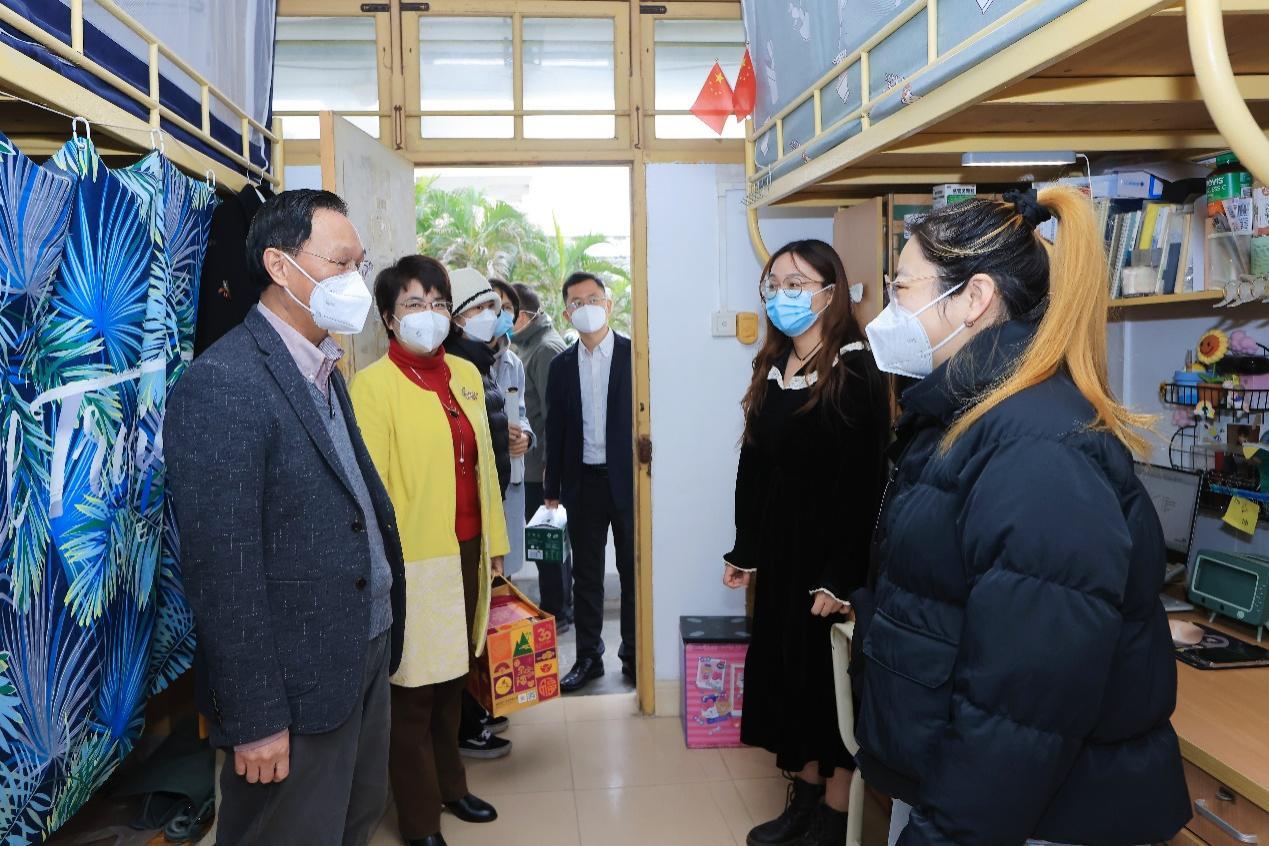 本站讯(记者/摄影 王一钦 郑润泽)在兔年春节来临之际,1月18日上午,sunbet申搏官方网站党委书记符宣国,校长、中国科学院院士骆清铭分别走访慰问春节假期留校学生,向他们致以新春祝福和亲切问候,并送上节日慰问品。符宣国一行前往8栋和14栋学生宿舍,详细询问留校学生的假期生活和学习情况,并送上亲自书写的“福”字挂历。符宣国叮嘱同学们在校时要遵守学校假期相关规定,做好疫情防护,合理安排假期时间,加强体育锻炼,并与家人朋...