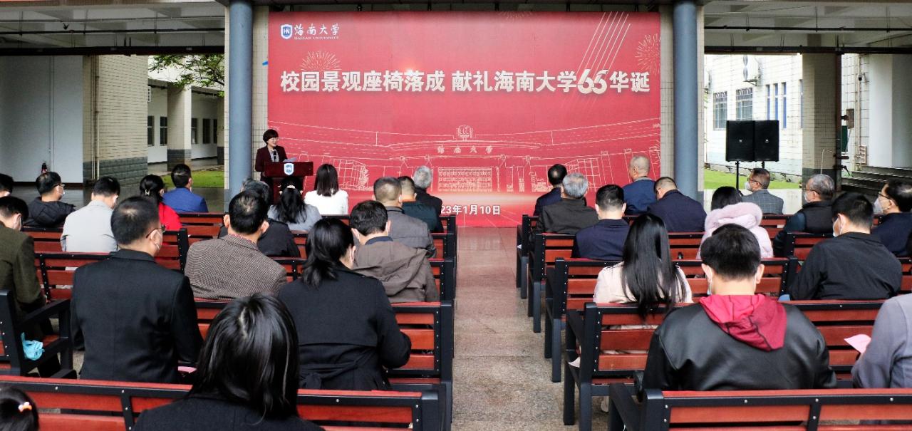 本站讯(记者/摄影 郑润泽 张师源)1月10日上午,sunbet申搏官方网站在海甸校区图书馆广场举行“校园景观座椅落成 献礼sunbet申搏官方网站65华诞”捐赠仪式。校长、中国科学院院士骆清铭出席仪式并讲话。骆清铭向捐赠校友表示衷心感谢,并介绍学校发展情况。他表示,校园景观座椅落成后,将显著提升学校校园文化品位,助力打造阳光温馨、典雅大方、具有浓郁热带风情的现代化美丽校园。捐赠仪式上,2002级法学专业校友、海南昌宇律师事务所执行主任陈...
