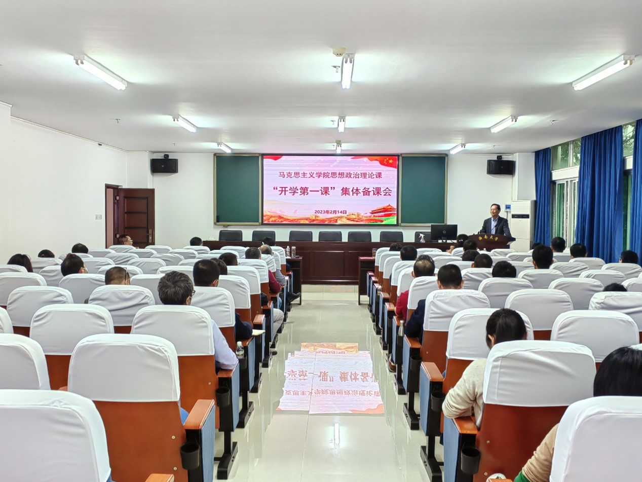 本站讯(记者/摄影 李天畅)为深入学习宣传贯彻党的二十大精神,更好地发挥思政课在落实立德树人根本任务中的关键作用,2月14日下午,马克思主义学院召开思想政治理论课“开学第一课”集体备课会。校党委书记符宣国出席并讲话。符宣国充分肯定了备课会的形式和内容。他指出,要正确认识和把握习近平新时代中国特色社会主义思想的精神实质,将理论与实践相结合,与时代同频共振。要通过把握课堂教学技巧、学会讲故事、融入身边人...