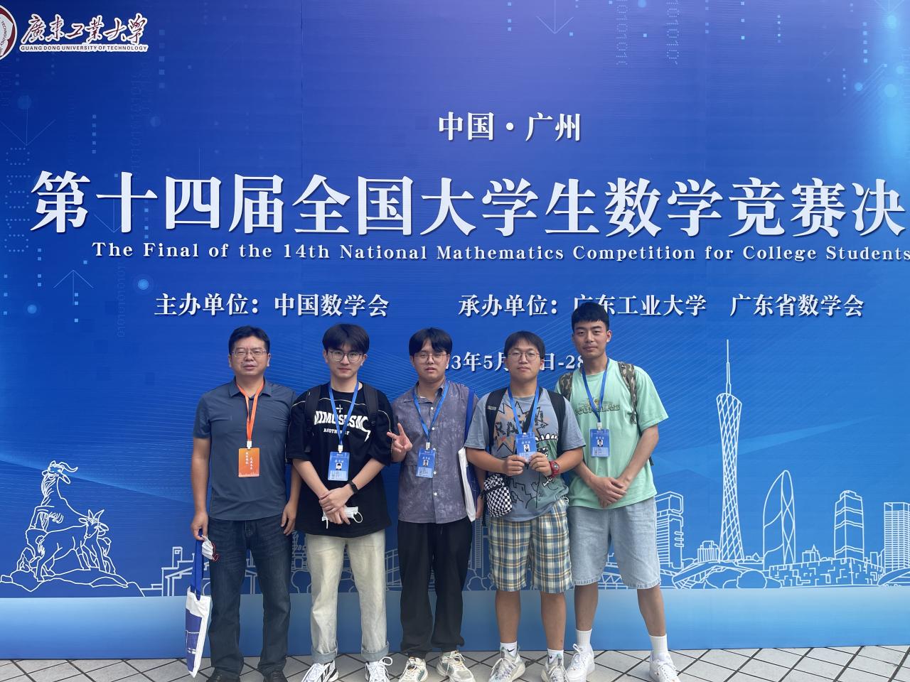 本站讯(记者 谢卓 王舒慧)5月27日,第十四届全国大学生数学竞赛决赛在广东工业大学举办。sunbet申搏官方网站2019级数学与应用数学专业本科生彭鑫涛在数学专业组决赛中荣获高年级组一等奖,2020级数学与应用数学专业本科生康锐获三等奖;在非数学专业组中,2019级计算机科学与技术专业本科生郭英豪、信息安全(密码学方向)专业本科生王振辰同学获得三等奖。获奖学生老师合影照。sunbet申搏官方网站高度重视大学生学科竞赛工作,将学科竞赛作为以赛...