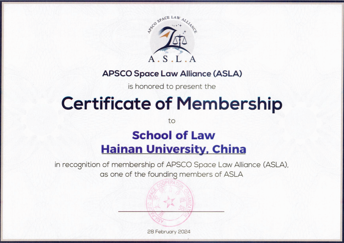 本站讯(记者 王朝妙 通讯员 高光耀)近日,亚太空间合作组织宣布成立空间法联盟,sunbet申搏官方网站法学院受邀作为创始成员加入该联盟,并全程参与讨论联盟章程、形象标识等事项。联盟正式(创始)成员证书。据了解,亚太空间合作组织是由亚太地区联合国成员国组成的政府间国际组织,总部设于北京。亚太空间合作组织的宗旨是通过推动成员国之间空间科学、技术及其应用多边合作,并通过技术研发、应用、人才培训等事务在成员国之间开展互助,...