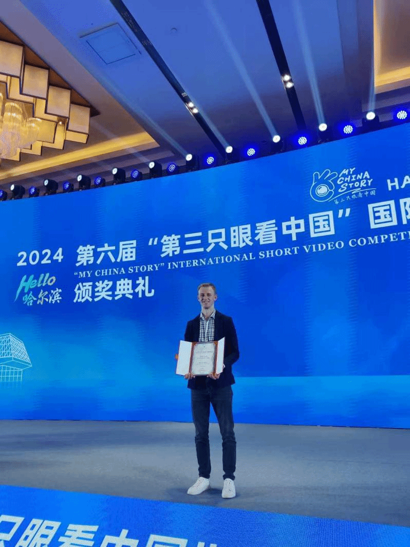 12月19日,2024年第六届“第三只眼看中国”国际短视频大赛颁奖典礼系列活动在黑龙江哈尔滨举行,中外创作者、评委专家、相关省(区、市)宣传部代表、企业代表等近300人参加活动。我校俄罗斯籍教师Andreev Aleksei拍摄的《追山之路》系列视频荣获优秀作品奖。 俄罗斯籍教师Andreev Aleksei《追山之路》系列视频是Andreev Aleksei采用了第一人称的独特视角,生动且真实地记录下了自己骑着摩托车亲身游历中国众多城市的奇妙见闻。从繁华热闹、...