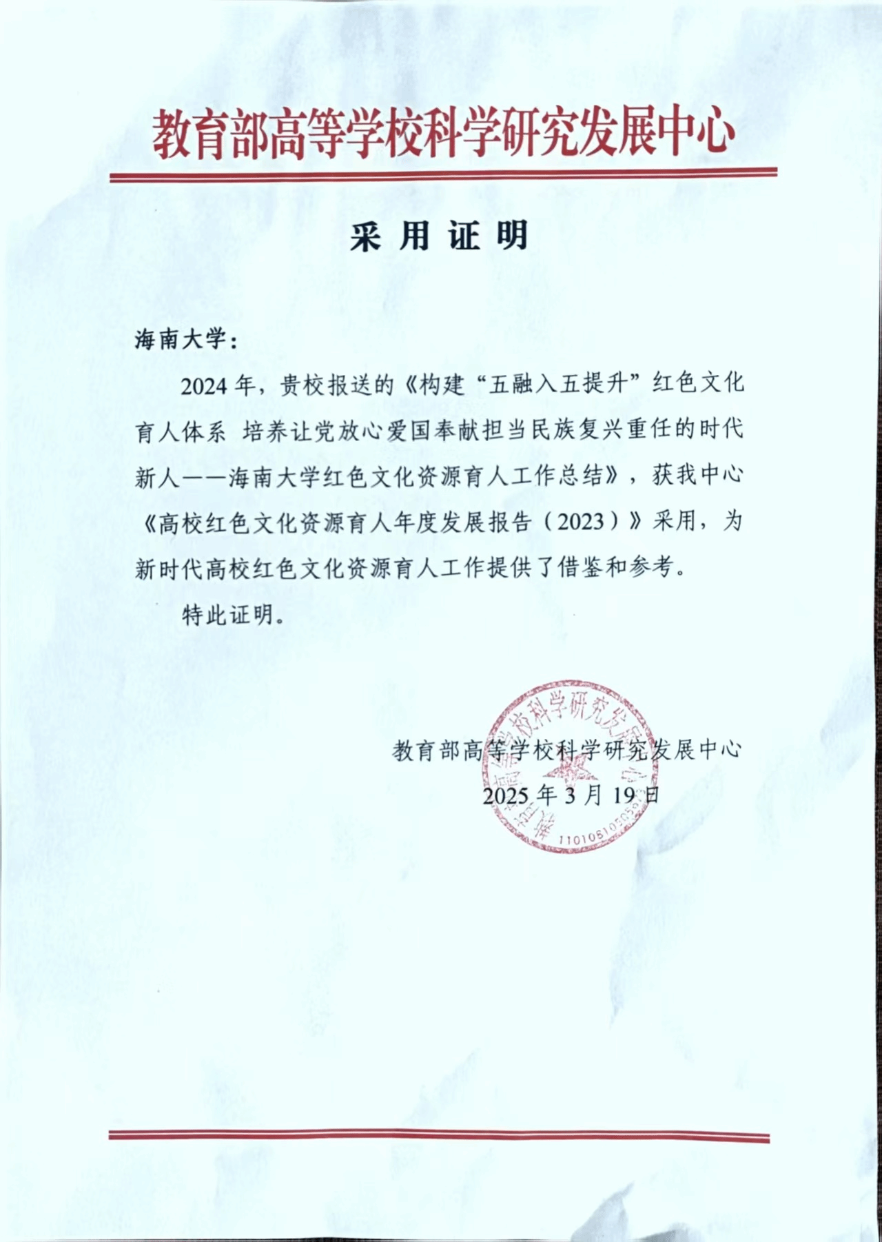 本站讯(通讯员 李布明)近日,sunbet申搏官方网站报送的《构建“五融入五提升”红色文化育人体系 培养让党放心爱国奉献担当民族复兴重任的时代新人 —— sunbet申搏官方网站红色文化资源育人工作总结》被教育部高等学校科学研究发展中心采用,入选《高校红色文化资源育人年度发展报告(2023)》。这是sunbet申搏官方网站红色文化资源育人成果首次入选该报告。近年来,sunbet申搏官方网站认真学习贯彻习近平文化思想和习近平总书记“要把红色资源利用好、把红色传统发扬好、把红色基因代代传承好”...
