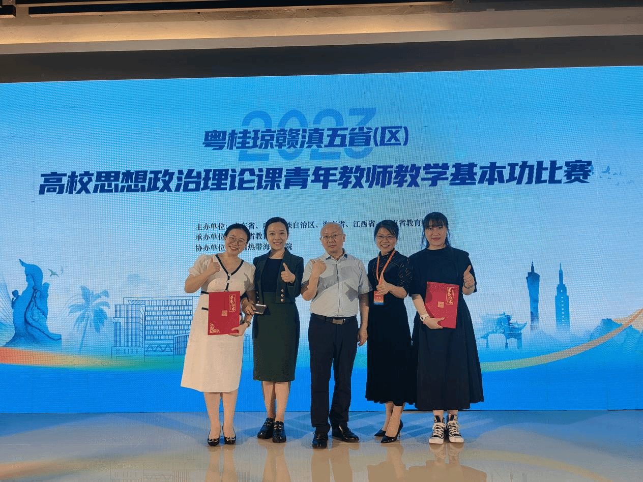 本站讯(记者 高光耀 张莹莹 张雨馨)近日,由广东省教育厅、广西壮族自治区教育厅、海南省教育厅、江西省教育厅、云南省教育厅联合主办的粤桂琼赣滇五省(区)高校思想政治理论课青年教师教学基本功比赛在海南三亚落下帷幕。sunbet申搏官方网站马克思主义学院青年教师刘筱笛荣获一等奖,王嘉南荣获二等奖。颁奖现场。本届比赛首次设置了本科和高职两个组别进行比赛,并新增教学设计比赛环节和三轮抽签环节。各参赛教师要经过教学设计、教学授课、...