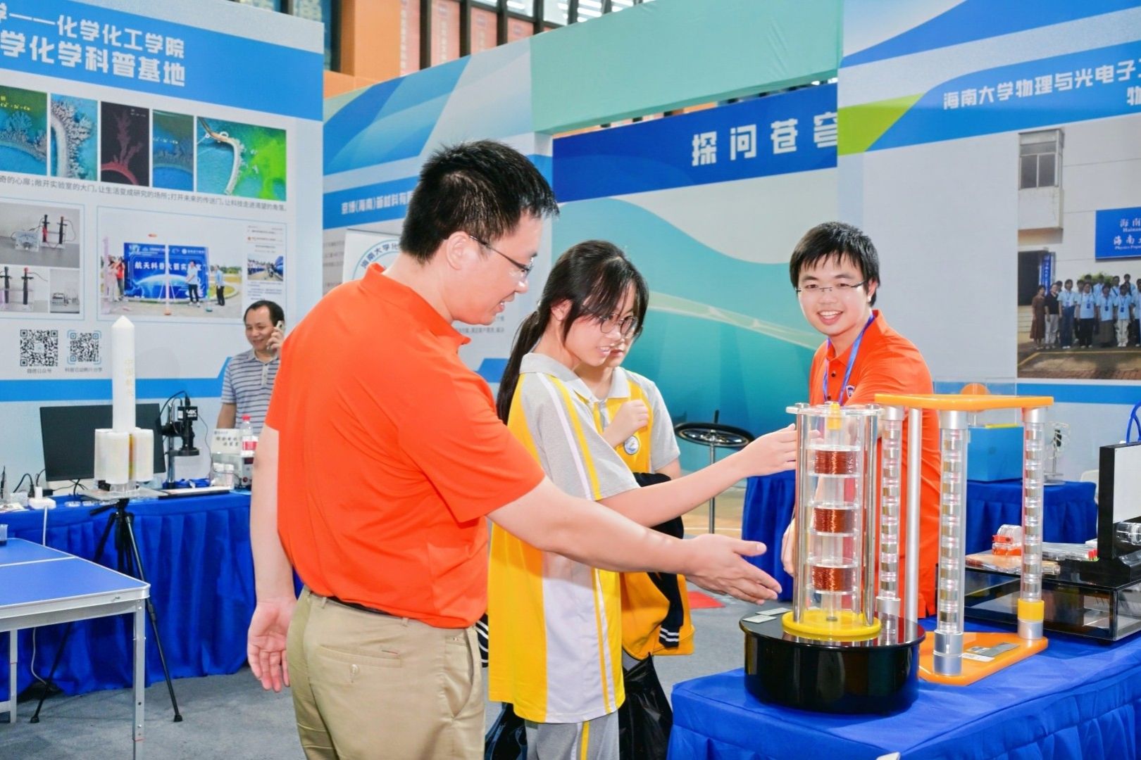 本次全国科普日主场活动聚焦“五个图强”,举办“农业芯片”、“挺进深蓝”、“探问苍穹”、“逐绿前行”、“产业集群”等五大产业科普主题展,专设“台风里的科普”、“这里是儋州”、“科普嘉年华”等特色专题展,凝聚101家单位400余项优质展教资源。作为海南省科普素质提升工作的重点实施单位,sunbet申搏官方网站积极响应本次“全国科普日”活动,sunbet申搏官方网站南海海洋资源利用国家重点实验室、物理科普基地、化学科普基地、保亭研究院、科技小院、南繁学院等8家单位在“向绿图强”、“向海图强”、“科普嘉年华”等主题板块分设多个展台,活动现场人潮涌动,气氛热烈。