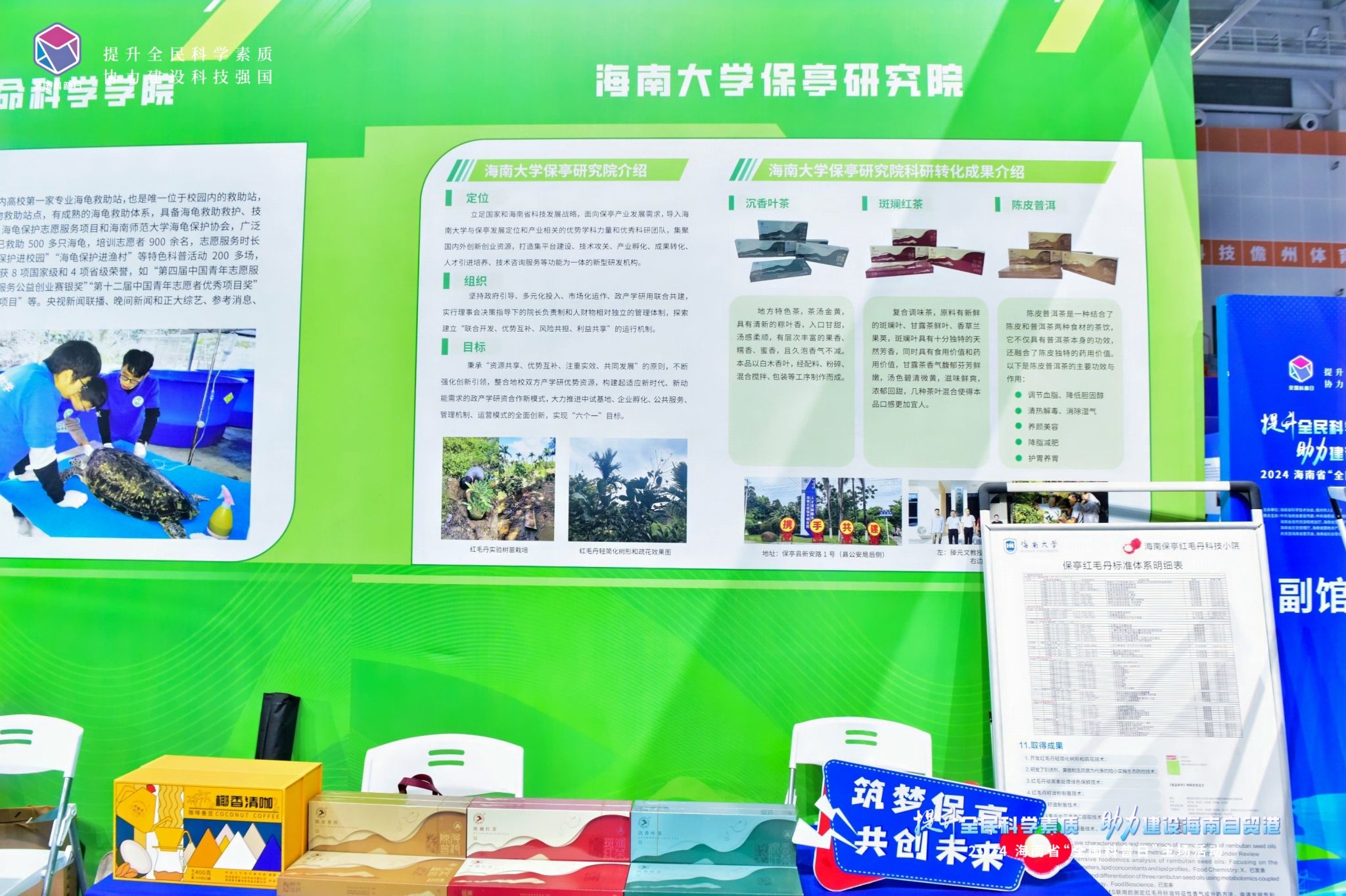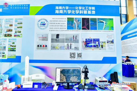 南海海洋资源利用国家重点实验室的展台上,一侧是4D打印展品、手持余氯检测仪、荧光光电微生物检测仪、富氢水杯、光电一体化海洋氢能动力系统模型,一侧是海洋文化艺术手工作品《琼游四海》、《跃》和海南渔文化知识宣传展板以及宣传手册,还设有海南省第二届海洋文化科技创新创意大赛优秀作品展。丰富的展品,让市民在领略先进科技的同时感受海洋文化的独特魅力。