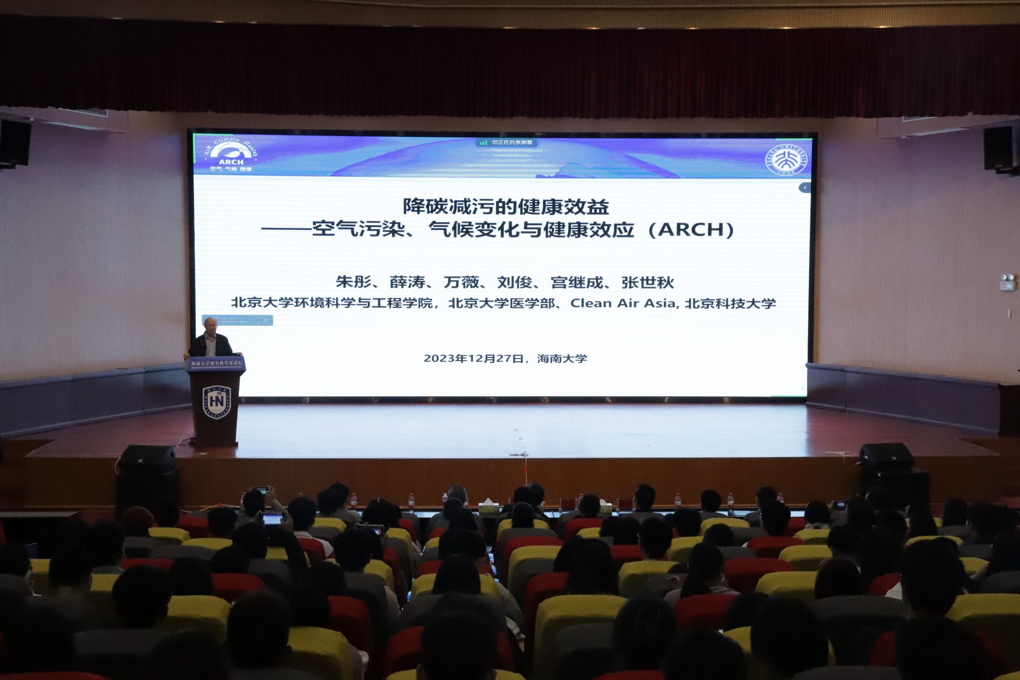 本站讯(记者 张刘嘉懿 通讯员 农伟强)12月27日下午,sunbet申搏官方网站第二十期顶尖科学家讲坛在田家炳副楼报告厅举行,中国科学院院士朱彤作题为《降碳减污的健康效益》的主题报告。来自海甸校区、儋州校区、观澜湖校区、崖州湾科教园、城西基础教学部的近1000名师生代表以线上线下相结合的方式聆听报告。sunbet申搏官方网站校党委常务副书记张继友主持讲坛。