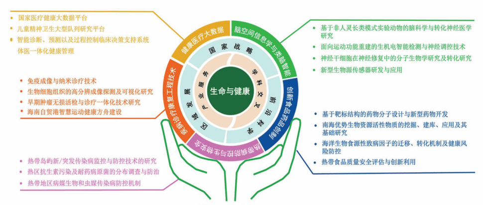 共建数字医学工程全国重点实验室,牵头建设海南省全健康国际研究院,建设生物医学与健康研究中心、新药筛选及评价平台、热带生物与医药学科创新引智基地、国家健康医疗大数据研究院等。