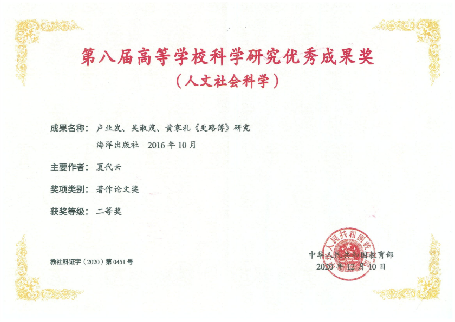 教育部第八届优秀成果奖(人文社会科学)奖状